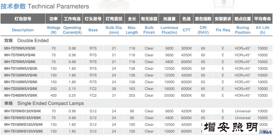 燈具G12單端金鹵燈泡質量最好價格最低,就買型號詳細介紹